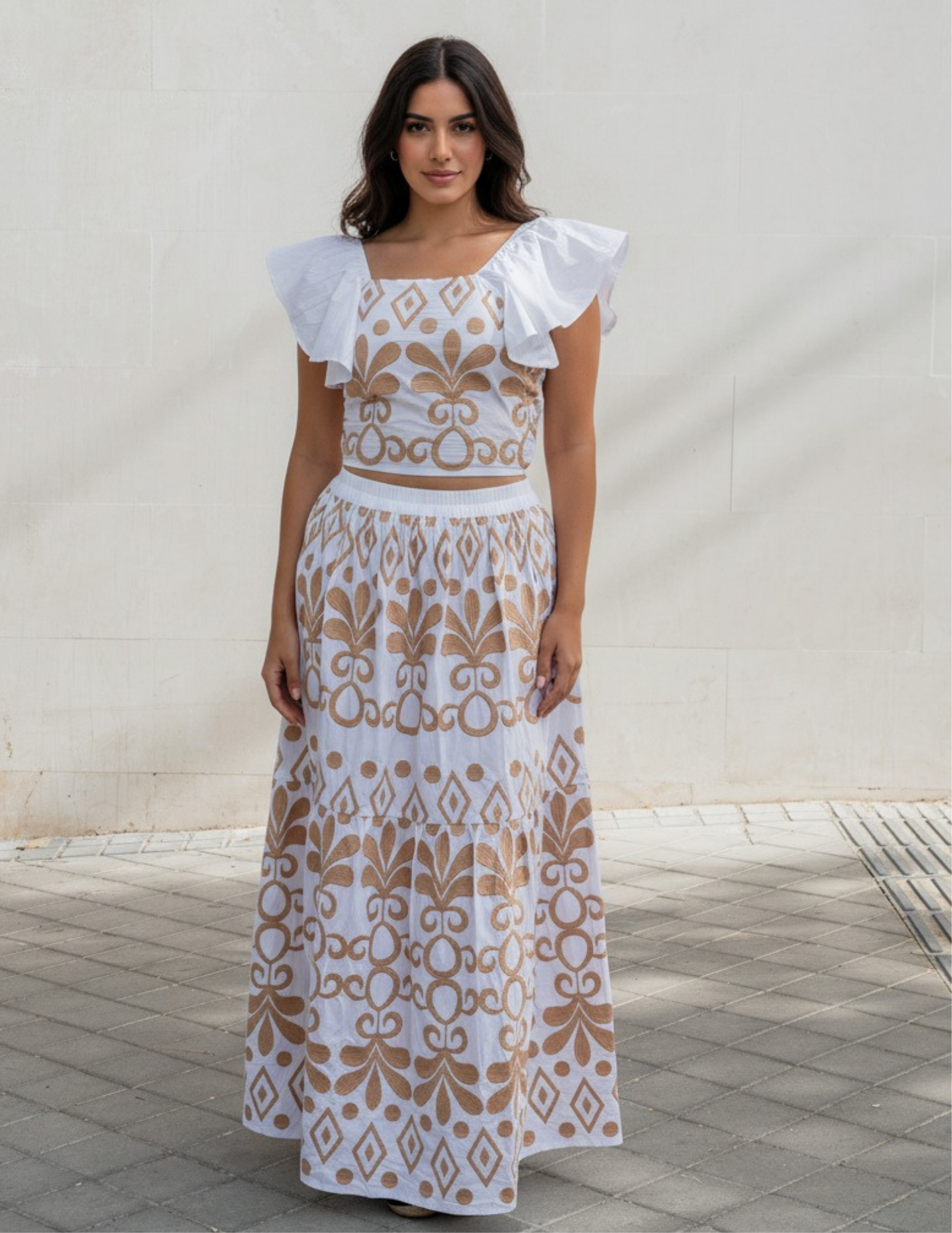 The Roca Set is a bold yet refined resort co-ord inspired by natural textures and sun-warmed landscapes. Designed with a relaxed silhouette, this set combines a softly structured top with matching bottoms, enhanced by distinctive artisanal detailing that adds depth and character. Comfortable and versatile, it is ideal for warm-weather styling, offering an effortless statement look that can be worn together or styled separately for multiple outfit options.