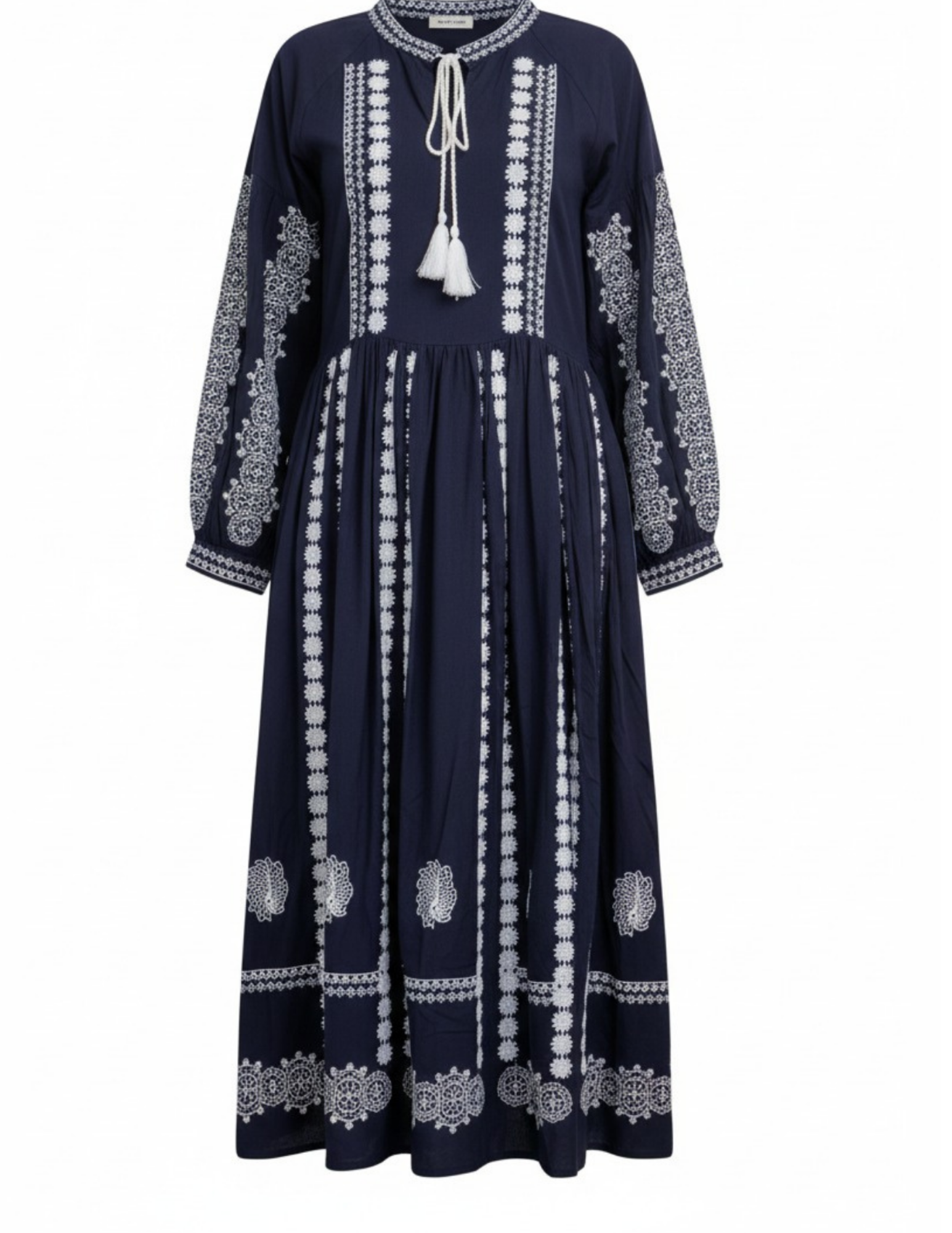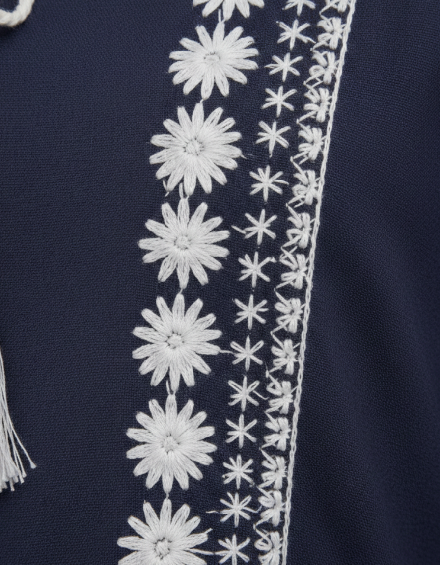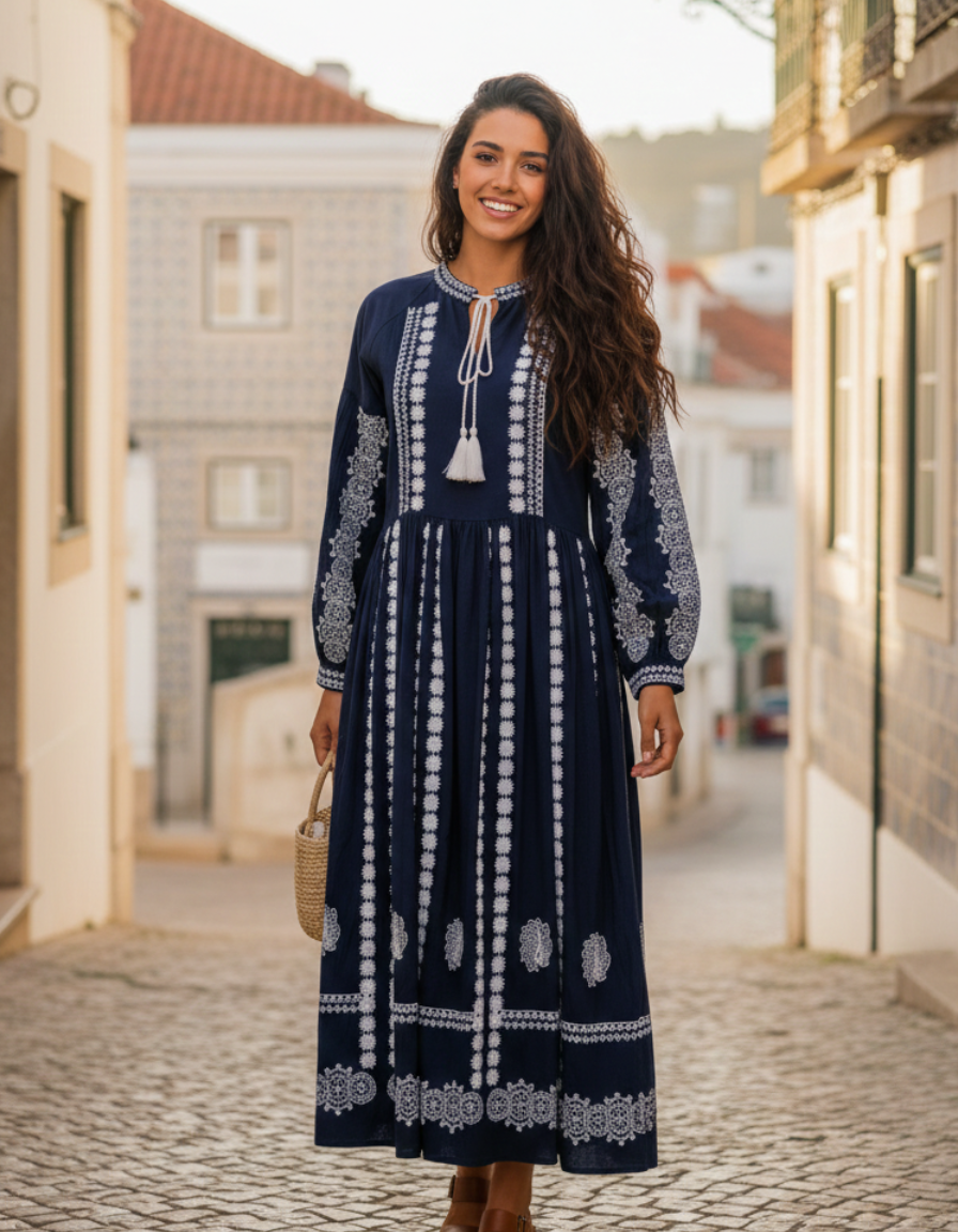 The Vela Dress is a light and fluid summer style designed for effortless movement and comfort. Featuring a softly draped silhouette with refined artisanal detailing, this dress captures the ease of warm-weather dressing while maintaining a feminine, polished look. Easy to style and flattering on the body, it transitions seamlessly from daytime wear to relaxed evening settings.