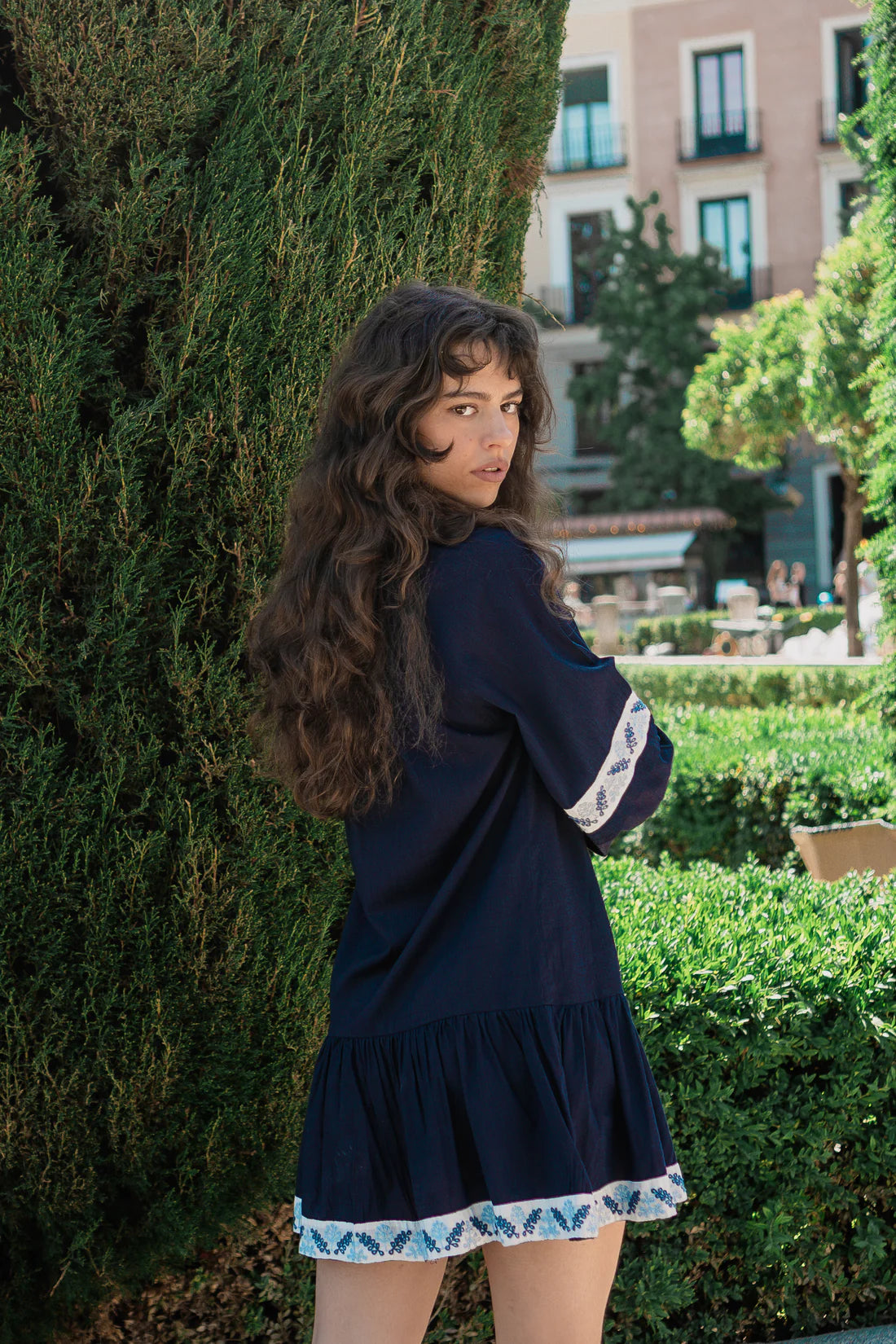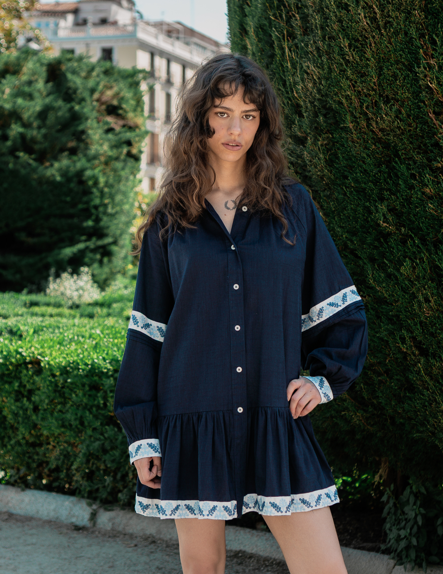 This short Maya dress is made from 100% viscose, offering a soft and breathable feel for all-day comfort. Delicate white embroidery adds a touch of elegance and femininity to a casual and stylish design. Perfect for warm weather, this dress combines beauty and comfort, making it a versatile addition to your wardrobe.